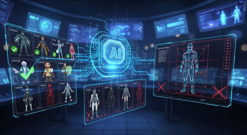 次に、AIによる監修作業の半自動化が挙げられる。事前に登録したキャラクターガイドラインや過去の監修データをもとに、AIが違反の可能性がある箇所を自動で指摘。担当者は単純なチェック作業から解放され、企画立案などのクリエイティブな業務に集中できる環境が整う。