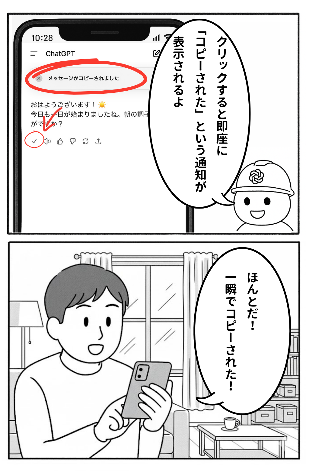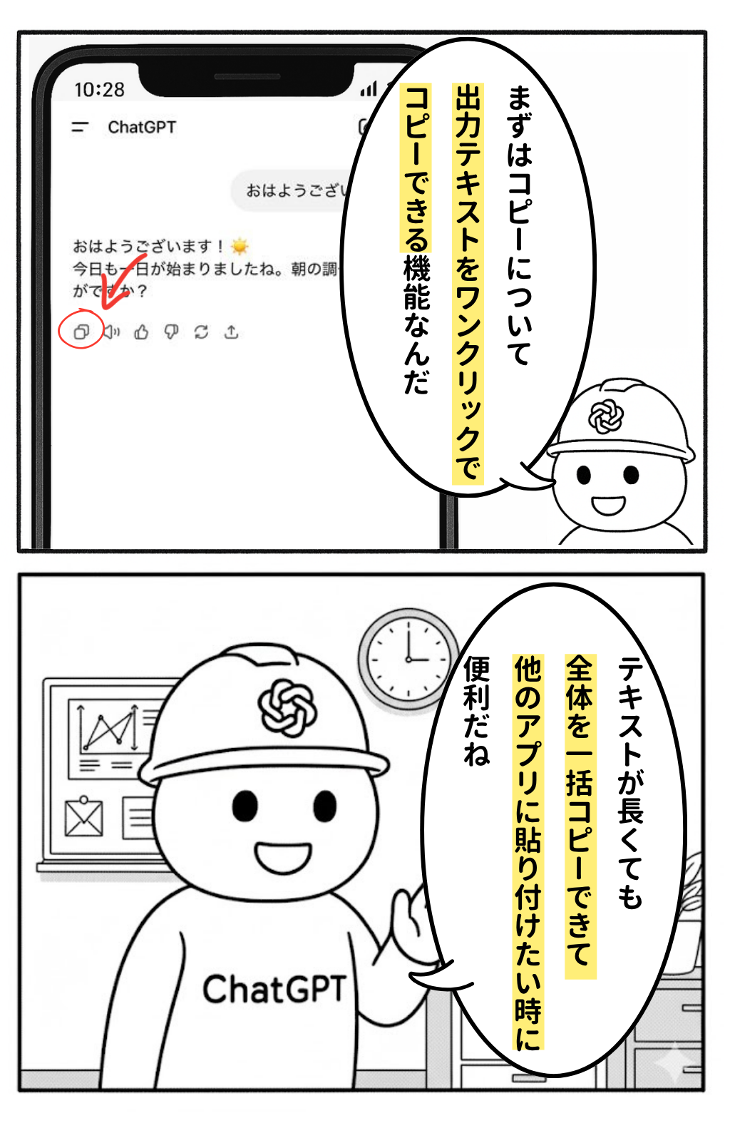 今回の漫画【前半】では、コピー、音声読み上げ、そしてフィードバック の3つを紹介しています。