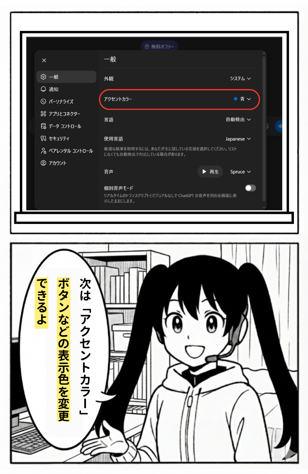 今回の漫画では、ChatGPTの設定の中にある「一般」について紹介しました。