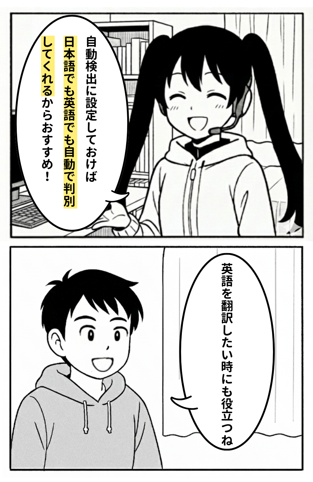 【後編】の漫画では、使用言語と音声について紹介します。お楽しみに!