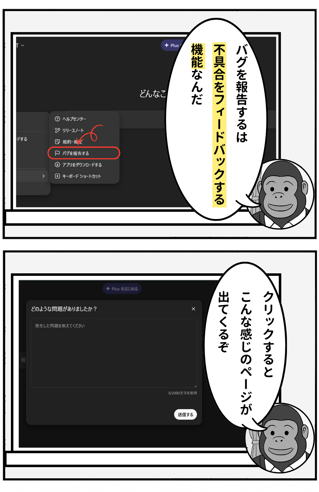 「バグを報告」「アプリをダウンロードする」「キーボードショートカット」の3つについて紹介しました。